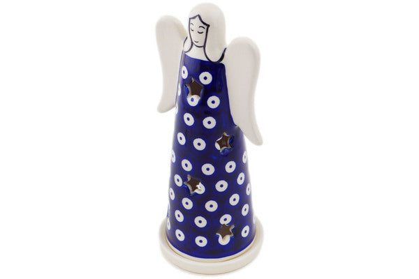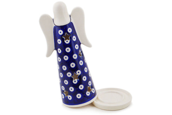 This Peacock Eyes 8" Candle Holder was handmade and hand decorated in Boleslawiec, Poland by skilled artisans according to old traditional methods. This Polish stoneware is microwave, dishwasher, freezer, and oven safe up to 480°F. It does not contain lead or cadmium. It is part of the Peacock Eyes Collection.
