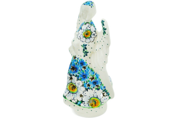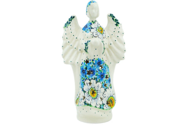 This Pansies And Daisies 9" Angel Candle Holder was handmade and hand decorated in Boleslawiec, Poland by skilled artisans according to old traditional methods. This is a Polish pottery Signature Unikat, which means that it has been hand painted with both sponges and brushes and it is signed by the artist who painted it. Unikat pieces are the most intricate works of art. Larger Unikat items take hours of very careful work to finish. This Polish stoneware is microwave, dishwasher, freezer, and oven safe up to 480°F. It does not contain lead or cadmium. It is part of the Pansies And Daisies Collection.