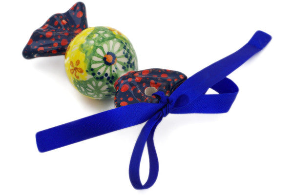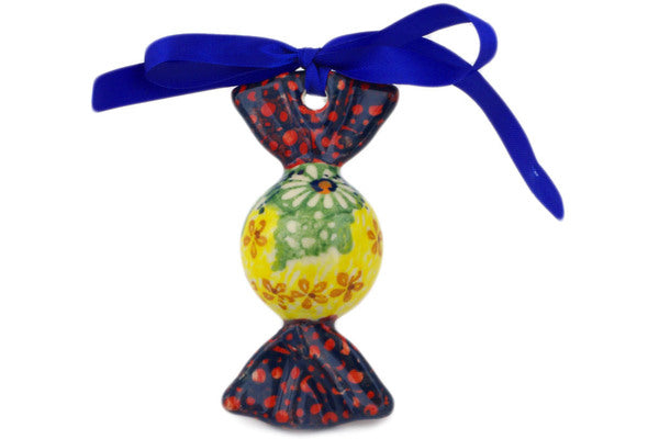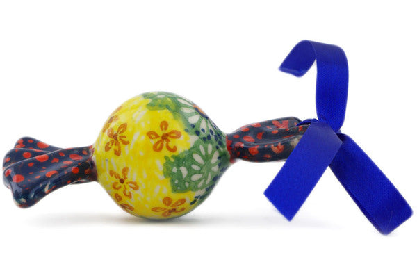 This Sunshine Grotto 3" Candy Ornament was handmade and hand decorated in Boleslawiec, Poland by skilled artisans according to old traditional methods. This is a Polish pottery Signature Unikat, which means that it has been hand painted with both sponges and brushes and it is signed by the artist who painted it. Unikat pieces are the most intricate works of art. Larger Unikat items take hours of very careful work to finish. This Polish stoneware is microwave, dishwasher, freezer, and oven safe up to 480°F. It does not contain lead or cadmium. It is part of the Sunshine Grotto Collection.