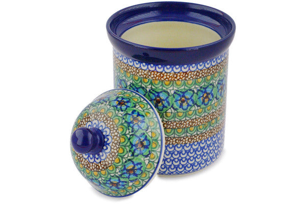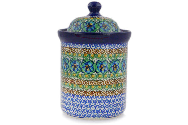 This Mardi Gras 8" Canister 8" was handmade and hand decorated in Boleslawiec, Poland by skilled artisans according to old traditional methods. This is a Polish pottery Signature Unikat, which means that it has been hand painted with both sponges and brushes and it is signed by the artist who painted it. Unikat pieces are the most intricate works of art. Larger Unikat items take hours of very careful work to finish. This Polish stoneware is microwave, dishwasher, freezer, and oven safe up to 480°F. It does not contain lead or cadmium. It is part of the Mardi Gras Collection.
