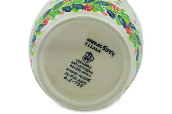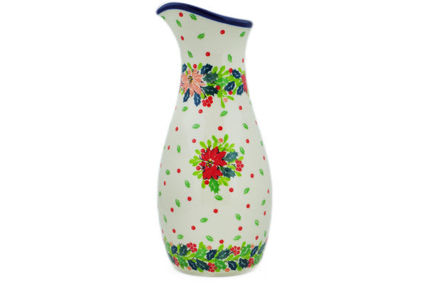 This Christmas Flower 5 Cup Carafe was handmade and hand decorated in Boleslawiec, Poland by skilled artisans according to old traditional methods. This is a Polish pottery Signature Unikat, which means that it has been hand painted with both sponges and brushes and it is signed by the artist who painted it. Unikat pieces are the most intricate works of art. Larger Unikat items take hours of very careful work to finish. This Polish stoneware is microwave, dishwasher, freezer, and oven safe up to 480°F. It does not contain lead or cadmium. It is part of the Christmas Flower Collection.