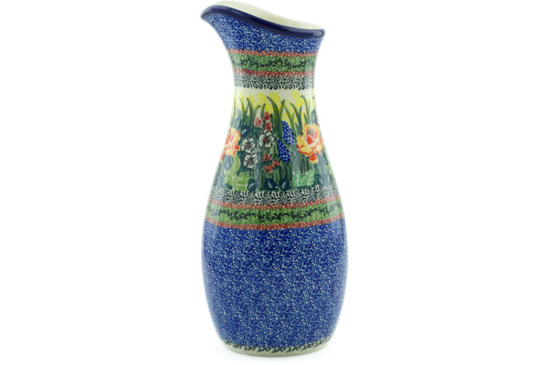 This Copper Rose Meadow 5 Cup Carafe was handmade and hand decorated in Boleslawiec, Poland by skilled artisans according to old traditional methods. This is a Polish pottery Signature Unikat, which means that it has been hand painted with both sponges and brushes and it is signed by the artist who painted it. Unikat pieces are the most intricate works of art. Larger Unikat items take hours of very careful work to finish. This Polish stoneware is microwave, dishwasher, freezer, and oven safe up to 480°F. It does not contain lead or cadmium. It is part of the Copper Rose Meadow Collection.