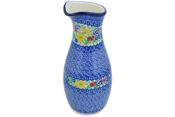 This Patio Views 5 Cup Carafe was handmade and hand decorated in Boleslawiec, Poland by skilled artisans according to old traditional methods. This is a Polish pottery Signature Unikat, which means that it has been hand painted with both sponges and brushes and it is signed by the artist who painted it. Unikat pieces are the most intricate works of art. Larger Unikat items take hours of very careful work to finish. This Polish stoneware is microwave, dishwasher, freezer, and oven safe up to 480°F. It does not contain lead or cadmium. It is part of the Patio Views Collection.