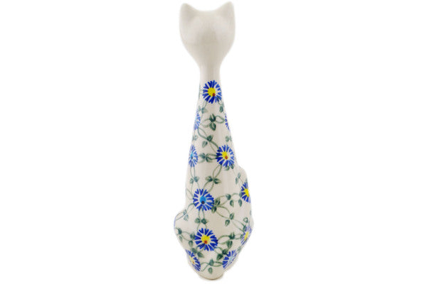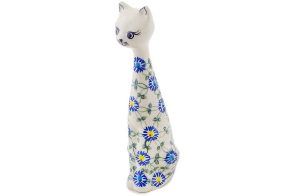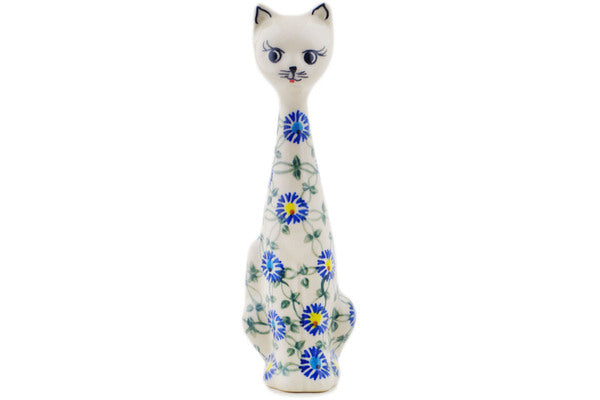 This Blue Thistle Beauty 10" Cat Figurine was handmade and hand decorated in Boleslawiec, Poland by skilled artisans according to old traditional methods. This Polish stoneware is microwave, dishwasher, freezer, and oven safe up to 480°F. It does not contain lead or cadmium. It is part of the Blue Thistle Beauty Collection.