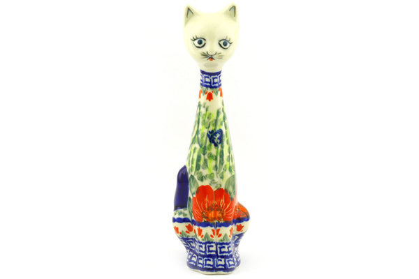 This Happiness 10" Cat Figurine was handmade and hand decorated in Boleslawiec, Poland by skilled artisans according to old traditional methods. This is a Polish pottery Signature Unikat, which means that it has been hand painted with both sponges and brushes and it is signed by the artist who painted it. Unikat pieces are the most intricate works of art. Larger Unikat items take hours of very careful work to finish. This Polish stoneware is microwave, dishwasher, freezer, and oven safe up to 480°F. It does not contain lead or cadmium. It is part of the Happiness Collection.