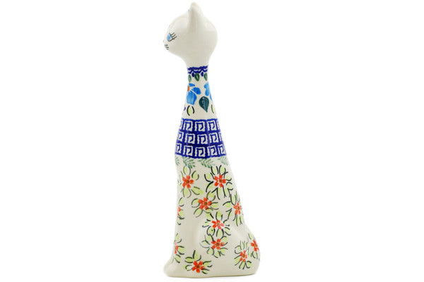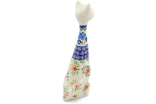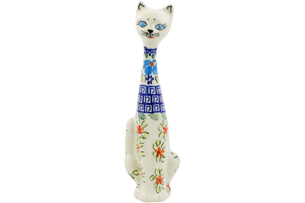 This Pansy Morning 10" Cat Figurine was handmade and hand decorated in Boleslawiec, Poland by skilled artisans according to old traditional methods. This Polish stoneware is microwave, dishwasher, freezer, and oven safe up to 480°F. It does not contain lead or cadmium. It is part of the Pansy Morning Collection.