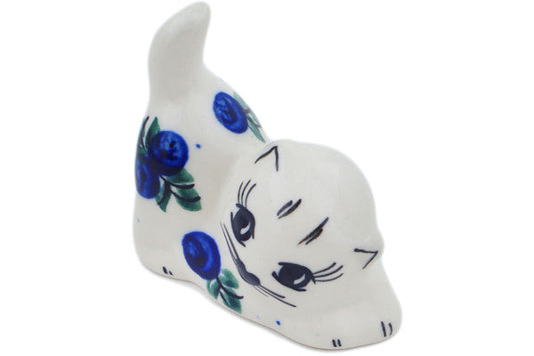 This Blue Berry Special 2" Cat Figurine was handmade and hand decorated in Boleslawiec, Poland by skilled artisans according to old traditional methods. This is a Polish pottery Signature Unikat, which means that it has been hand painted with both sponges and brushes and it is signed by the artist who painted it. Unikat pieces are the most intricate works of art. Larger Unikat items take hours of very careful work to finish. This Polish stoneware is microwave, dishwasher, freezer, and oven safe up to 480°F. It does not contain lead or cadmium. It is part of the Blue Berry Special Collection.