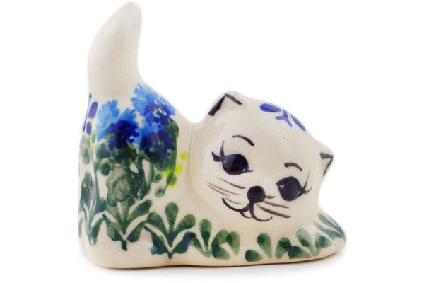 This Fresh Flora 2" Cat Figurine was handmade and hand decorated in Boleslawiec, Poland by skilled artisans according to old traditional methods. This Polish stoneware is microwave, dishwasher, freezer, and oven safe up to 480°F. It does not contain lead or cadmium. It is part of the Fresh Flora Collection.