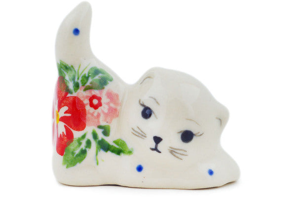 This Hibiscus Splendor 2" Cat Figurine was handmade and hand decorated in Boleslawiec, Poland by skilled artisans according to old traditional methods. This Polish stoneware is microwave, dishwasher, freezer, and oven safe up to 480°F. It does not contain lead or cadmium. It is part of the Hibiscus Splendor Collection.