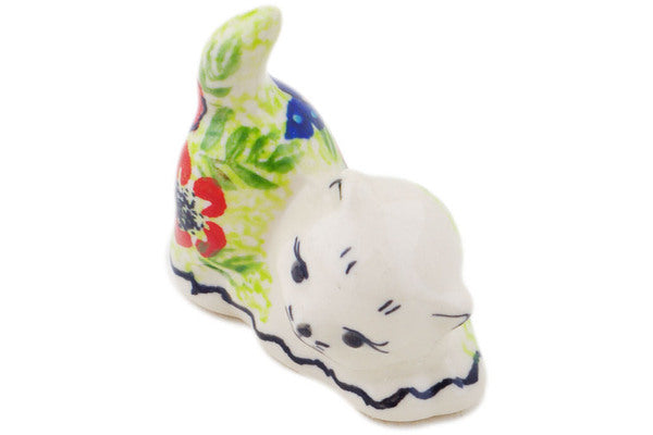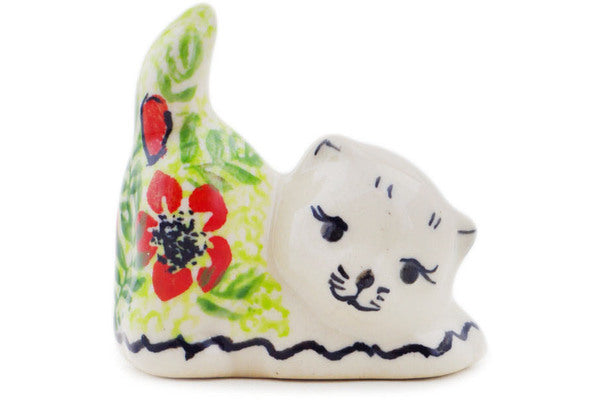 This Metamorphosis 2" Cat Figurine was handmade and hand decorated in Boleslawiec, Poland by skilled artisans according to old traditional methods. This Polish stoneware is microwave, dishwasher, freezer, and oven safe up to 480°F. It does not contain lead or cadmium. It is part of the Metamorphosis Collection.