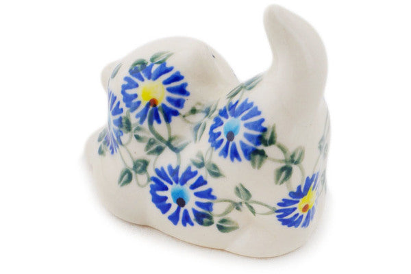 This Blue Thistle Beauty 3" Cat Figurine was handmade and hand decorated in Boleslawiec, Poland by skilled artisans according to old traditional methods. This Polish stoneware is microwave, dishwasher, freezer, and oven safe up to 480°F. It does not contain lead or cadmium. It is part of the Blue Thistle Beauty Collection.
