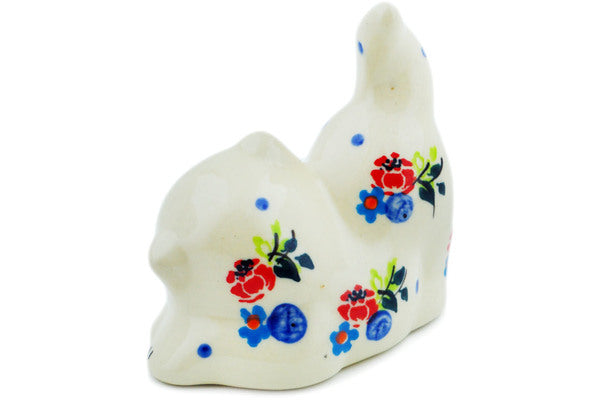 This Dancing Flowers 3" Cat Figurine was handmade and hand decorated in Boleslawiec, Poland by skilled artisans according to old traditional methods. This is a Polish pottery Signature Unikat, which means that it has been hand painted with both sponges and brushes and it is signed by the artist who painted it. Unikat pieces are the most intricate works of art. Larger Unikat items take hours of very careful work to finish. This Polish stoneware is microwave, dishwasher, freezer, and oven safe up to 480°F. It does not contain lead or cadmium. It is part of the Dancing Flowers Collection.