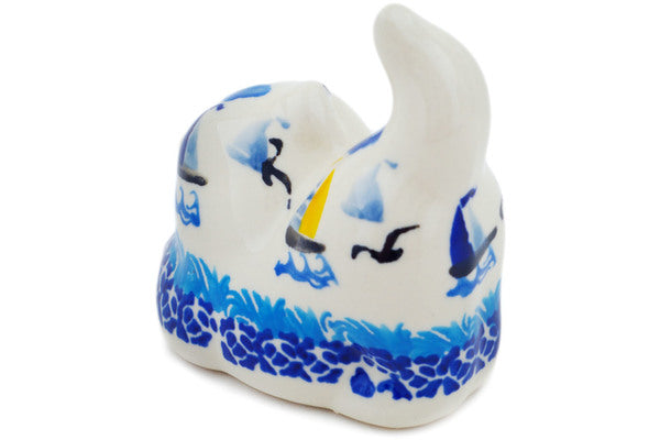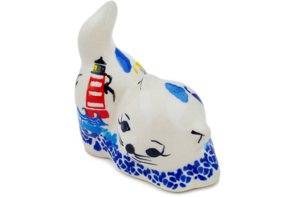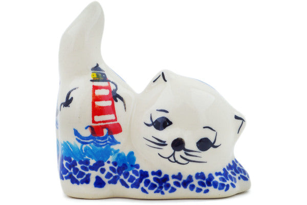 This Sea Sights 3" Cat Figurine was handmade and hand decorated in Boleslawiec, Poland by skilled artisans according to old traditional methods. This is a Polish pottery Signature Unikat, which means that it has been hand painted with both sponges and brushes and it is signed by the artist who painted it. Unikat pieces are the most intricate works of art. Larger Unikat items take hours of very careful work to finish. This Polish stoneware is microwave, dishwasher, freezer, and oven safe up to 480°F. It does not contain lead or cadmium. It is part of the Sea Sights Collection.
