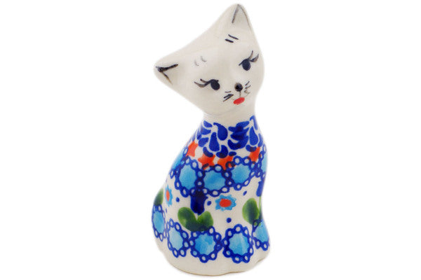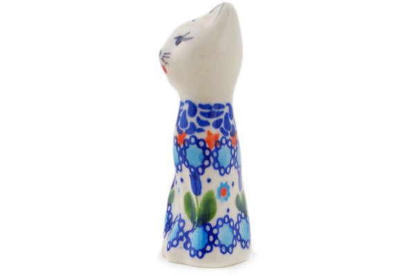 This Blue Tulip Garden 4" Cat Figurine was handmade and hand decorated in Boleslawiec, Poland by skilled artisans according to old traditional methods. This is a Polish pottery Signature Unikat, which means that it has been hand painted with both sponges and brushes and it is signed by the artist who painted it. Unikat pieces are the most intricate works of art. Larger Unikat items take hours of very careful work to finish. This Polish stoneware is microwave, dishwasher, freezer, and oven safe up to 480°F. It does not contain lead or cadmium. It is part of the Blue Tulip Garden Collection.