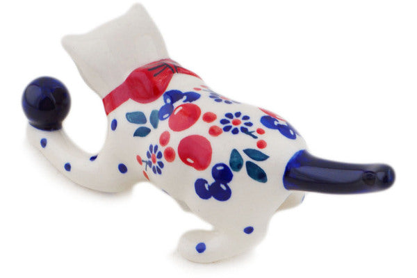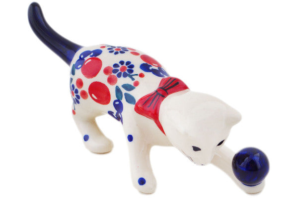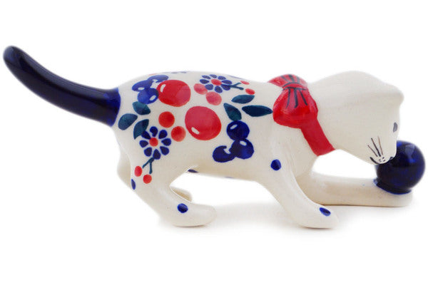 This Burst Of Berries 5" Cat Figurine was handmade and hand decorated in Boleslawiec, Poland by skilled artisans according to old traditional methods. This Polish stoneware is microwave, dishwasher, freezer, and oven safe up to 480°F. It does not contain lead or cadmium. It is part of the Burst Of Berries Collection.