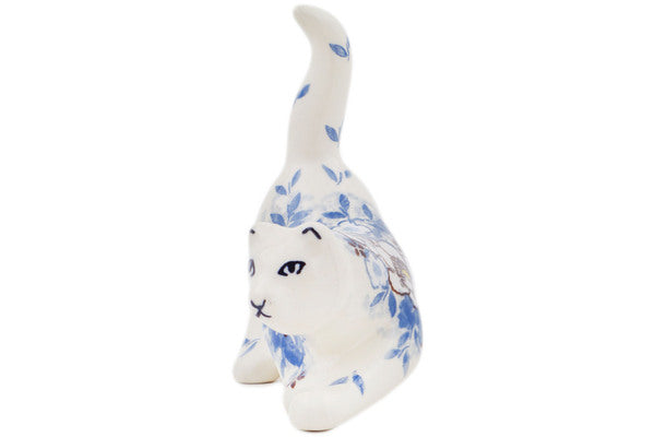 This Pansy Parade 5" Cat Figurine was handmade and hand decorated in Boleslawiec, Poland by skilled artisans according to old traditional methods. This is a Polish pottery Signature Unikat, which means that it has been hand painted with both sponges and brushes and it is signed by the artist who painted it. Unikat pieces are the most intricate works of art. Larger Unikat items take hours of very careful work to finish. This Polish stoneware is microwave, dishwasher, freezer, and oven safe up to 480°F. It does not contain lead or cadmium. It is part of the Pansy Parade Collection.