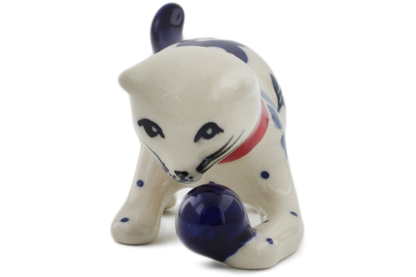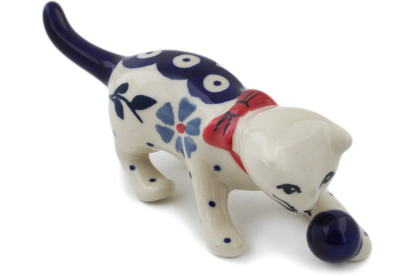 This Peacock Forget-Me-Not 5" Cat Figurine was handmade and hand decorated in Boleslawiec, Poland by skilled artisans according to old traditional methods. This Polish stoneware is microwave, dishwasher, freezer, and oven safe up to 480°F. It does not contain lead or cadmium. It is part of the Peacock Forget-Me-Not Collection.