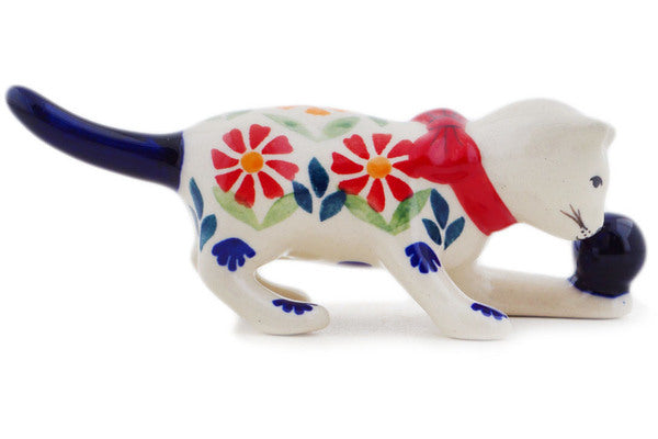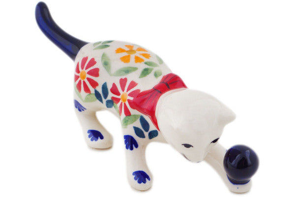 This Wave Of Flowers 5" Cat Figurine was handmade and hand decorated in Boleslawiec, Poland by skilled artisans according to old traditional methods. This Polish stoneware is microwave, dishwasher, freezer, and oven safe up to 480°F. It does not contain lead or cadmium. It is part of the Wave Of Flowers Collection.