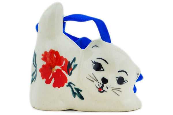 This Red Cornflower 2 oz Cat Ornament was handmade and hand decorated in Boleslawiec, Poland by skilled artisans according to old traditional methods. This Polish stoneware is microwave, dishwasher, freezer, and oven safe up to 480°F. It does not contain lead or cadmium. It is part of the Red Cornflower Collection.