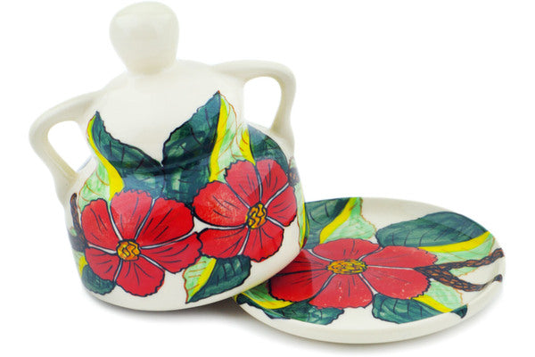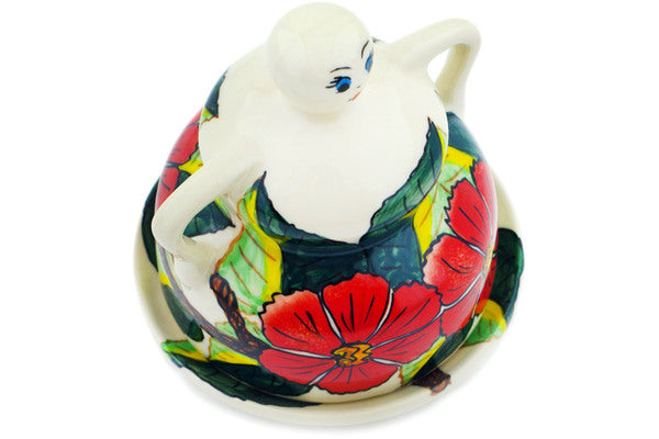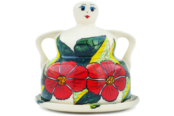 This Poinsettia Paradise 4" Cheese Lady was handmade and hand decorated in Boleslawiec, Poland by skilled artisans according to old traditional methods. This is a Polish pottery Signature Unikat, which means that it has been hand painted with both sponges and brushes and it is signed by the artist who painted it. Unikat pieces are the most intricate works of art. Larger Unikat items take hours of very careful work to finish. This Polish stoneware is microwave, dishwasher, freezer, and oven safe up to 480°F. It does not contain lead or cadmium. It is part of the Poinsettia Paradise Collection.