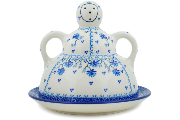 This Blue Grapevine 8" Cheese Lady was handmade and hand decorated in Boleslawiec, Poland by skilled artisans according to old traditional methods. This Polish stoneware is microwave, dishwasher, freezer, and oven safe up to 480°F. It does not contain lead or cadmium. It is part of the Blue Grapevine Collection.