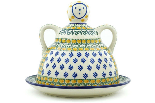 This Autumn Weatfields 9" Cheese Lady was handmade and hand decorated in Boleslawiec, Poland by skilled artisans according to old traditional methods. This Polish stoneware is microwave, dishwasher, freezer, and oven safe up to 480°F. It does not contain lead or cadmium. It is part of the Autumn Weatfields Collection.