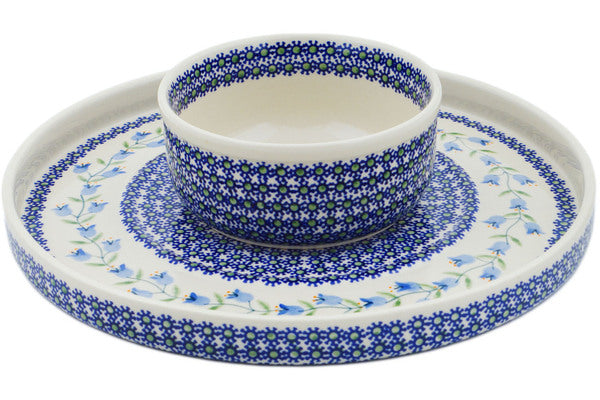This Sweet Dreams 13" Chip and Dip and Cake Stand Combo was handmade and hand decorated in Boleslawiec, Poland by skilled artisans according to old traditional methods. This Polish stoneware is microwave, dishwasher, freezer, and oven safe up to 480°F. It does not contain lead or cadmium. It is part of the Sweet Dreams Collection.