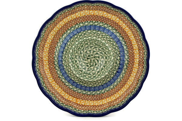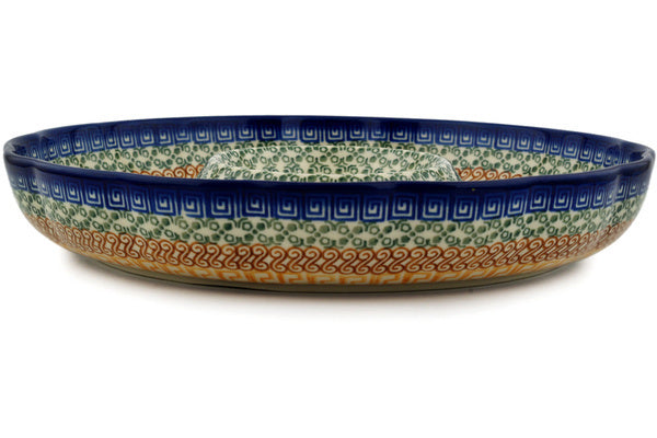 This Grecian Sea 12" Chip and Dip Platter was handmade and hand decorated in Boleslawiec, Poland by skilled artisans according to old traditional methods. This Polish stoneware is microwave, dishwasher, freezer, and oven safe up to 480°F. It does not contain lead or cadmium. It is part of the Grecian Sea Collection.