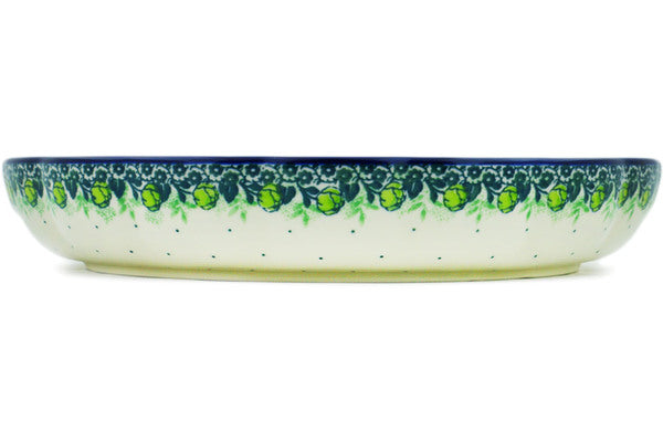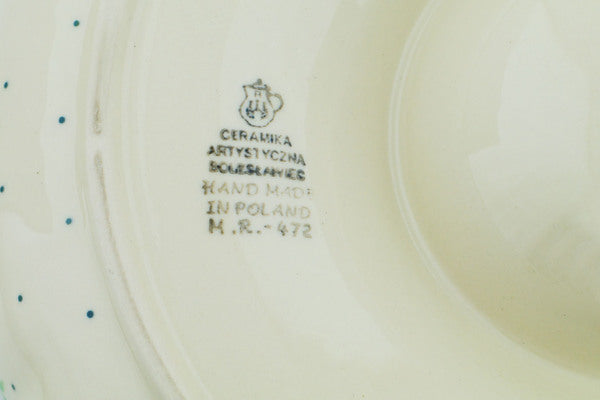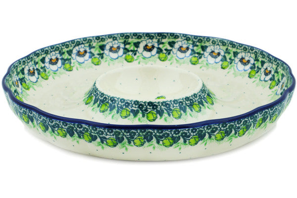 This Green Flora 12" Chip and Dip Platter was handmade and hand decorated in Boleslawiec, Poland by skilled artisans according to old traditional methods. This Polish stoneware is microwave, dishwasher, freezer, and oven safe up to 480°F. It does not contain lead or cadmium. It is part of the Green Flora Collection.