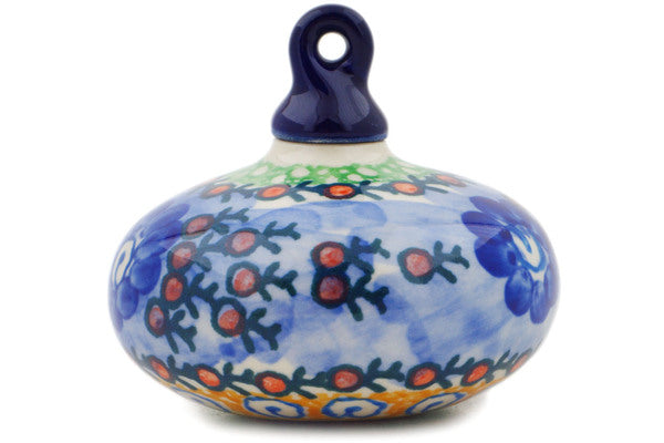 This Blue Poppy Circle 3" Christmas Ball Ornament was handmade and hand decorated in Boleslawiec, Poland by skilled artisans according to old traditional methods. This is a Polish pottery Signature Unikat, which means that it has been hand painted with both sponges and brushes and it is signed by the artist who painted it. Unikat pieces are the most intricate works of art. Larger Unikat items take hours of very careful work to finish. This Polish stoneware is microwave, dishwasher, freezer, and oven safe up to 480°F. It does not contain lead or cadmium. It is part of the Blue Poppy Circle Collection.