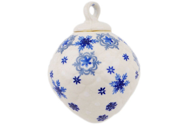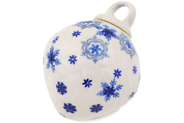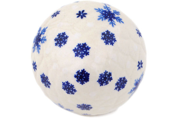 This Flurry Fun 4" Christmas Ball Ornament was handmade and hand decorated in Boleslawiec, Poland by skilled artisans according to old traditional methods. This is a Polish pottery Signature Unikat, which means that it has been hand painted with both sponges and brushes and it is signed by the artist who painted it. Unikat pieces are the most intricate works of art. Larger Unikat items take hours of very careful work to finish. This Polish stoneware is microwave, dishwasher, freezer, and oven safe up to 480°F. It does not contain lead or cadmium. It is part of the Flurry Fun Collection.