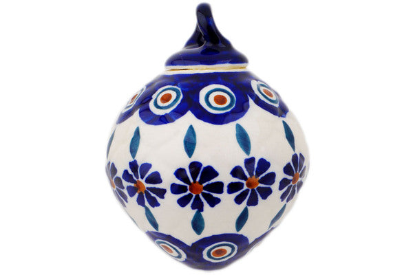 This Peacock 4" Christmas Ball Ornament was handmade and hand decorated in Boleslawiec, Poland by skilled artisans according to old traditional methods. This Polish stoneware is microwave, dishwasher, freezer, and oven safe up to 480°F. It does not contain lead or cadmium. It is part of the Peacock Collection.