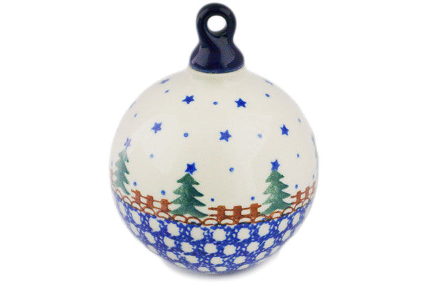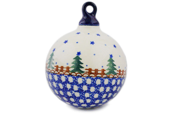 This Winter Evergreen 4" Christmas Ball Ornament was handmade and hand decorated in Boleslawiec, Poland by skilled artisans according to old traditional methods. This Polish stoneware is microwave, dishwasher, freezer, and oven safe up to 480°F. It does not contain lead or cadmium. It is part of the Winter Evergreen Collection.