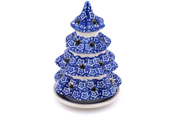 This Night Sky 6" Christmas Tree Candle Holder was handmade and hand decorated in Boleslawiec, Poland by skilled artisans according to old traditional methods. This Polish stoneware is microwave, dishwasher, freezer, and oven safe up to 480°F. It does not contain lead or cadmium. It is part of the Night Sky Collection.