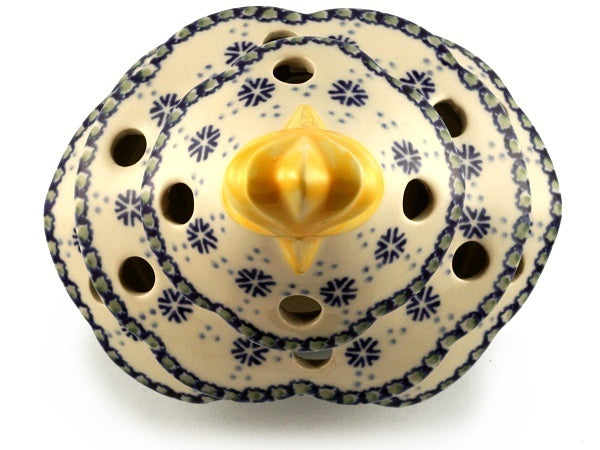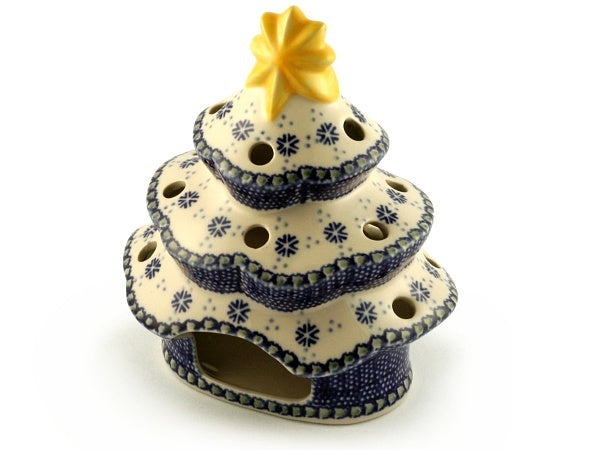 This Falling Snowflakes 7" Christmas Tree Candle Holder was handmade and hand decorated in Boleslawiec, Poland by skilled artisans according to old traditional methods. This Polish stoneware is microwave, dishwasher, freezer, and oven safe up to 480°F. It does not contain lead or cadmium. It is part of the Falling Snowflakes Collection.