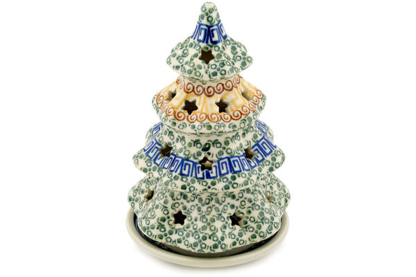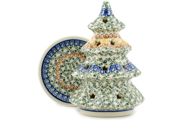 This Grecian Sea 7" Christmas Tree Candle Holder was handmade and hand decorated in Boleslawiec, Poland by skilled artisans according to old traditional methods. This Polish stoneware is microwave, dishwasher, freezer, and oven safe up to 480°F. It does not contain lead or cadmium. It is part of the Grecian Sea Collection.