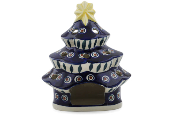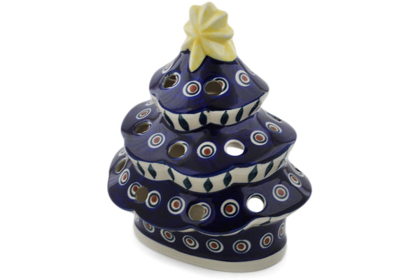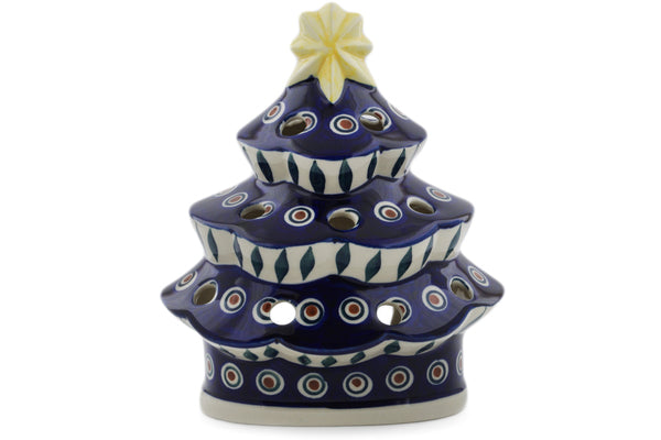 This Peacock 7" Christmas Tree Candle Holder was handmade and hand decorated in Boleslawiec, Poland by skilled artisans according to old traditional methods. This Polish stoneware is microwave, dishwasher, freezer, and oven safe up to 480°F. It does not contain lead or cadmium. It is part of the Peacock Collection.