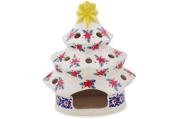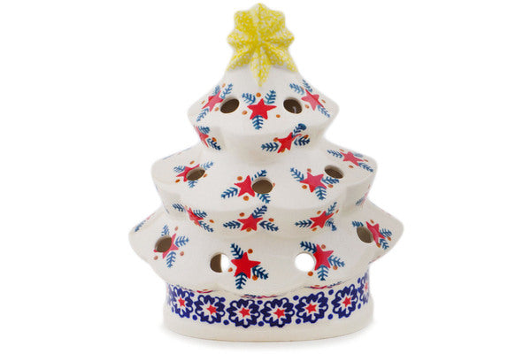 This Starry Wreath 7" Christmas Tree Candle Holder was handmade and hand decorated in Boleslawiec, Poland by skilled artisans according to old traditional methods. This Polish stoneware is microwave, dishwasher, freezer, and oven safe up to 480°F. It does not contain lead or cadmium. It is part of the Starry Wreath Collection.