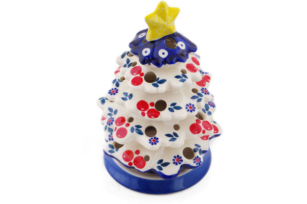This Burst Of Berries 8" Christmas Tree Candle Holder was handmade and hand decorated in Boleslawiec, Poland by skilled artisans according to old traditional methods. This Polish stoneware is microwave, dishwasher, freezer, and oven safe up to 480°F. It does not contain lead or cadmium. It is part of the Burst Of Berries Collection.
