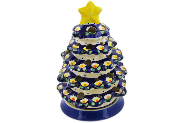 This Waterlily 8" Christmas Tree Candle Holder was handmade and hand decorated in Boleslawiec, Poland by skilled artisans according to old traditional methods. This Polish stoneware is microwave, dishwasher, freezer, and oven safe up to 480°F. It does not contain lead or cadmium. It is part of the Waterlily Collection.