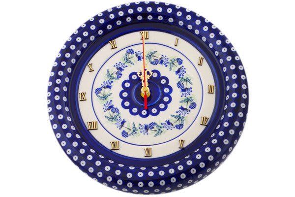 This Cornflower Blue Eyes 12" Clock was handmade and hand decorated in Boleslawiec, Poland by skilled artisans according to old traditional methods. This Polish stoneware is microwave, dishwasher, freezer, and oven safe up to 480°F. It does not contain lead or cadmium. It is part of the Cornflower Blue Eyes Collection.