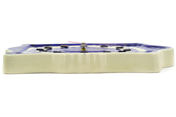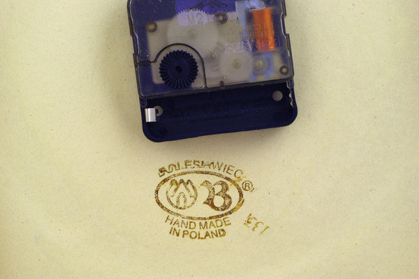 This Flowering Peacock 12" Clock was handmade and hand decorated in Boleslawiec, Poland by skilled artisans according to old traditional methods. This Polish stoneware is microwave, dishwasher, freezer, and oven safe up to 480°F. It does not contain lead or cadmium. It is part of the Flowering Peacock Collection.