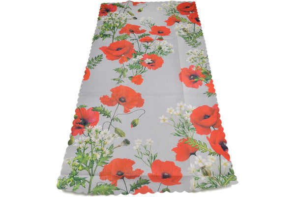 This Fresh Red Poppy Grey 39" Cloth Table Runner was handmade and hand decorated in Boleslawiec, Poland by skilled artisans according to old traditional methods. This Polish stoneware is microwave, dishwasher, freezer, and oven safe up to 480°F. It does not contain lead or cadmium. It is part of the Fresh Red Poppy Grey Collection.