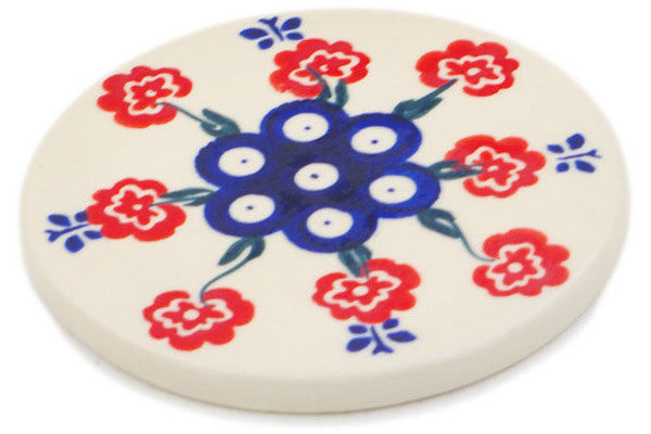 This Blue Eye Spring 4" Coaster was handmade and hand decorated in Boleslawiec, Poland by skilled artisans according to old traditional methods. This Polish stoneware is microwave, dishwasher, freezer, and oven safe up to 480°F. It does not contain lead or cadmium. It is part of the Blue Eye Spring Collection.