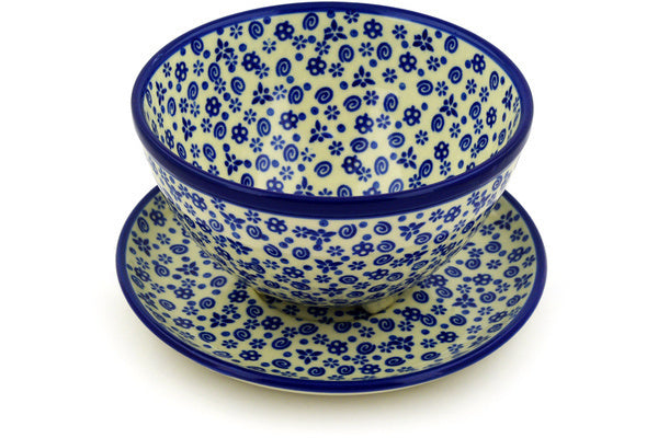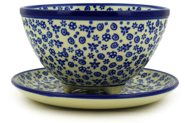 This Blue Confetti 8" Colander with Plate was handmade and hand decorated in Boleslawiec, Poland by skilled artisans according to old traditional methods. This Polish stoneware is microwave, dishwasher, freezer, and oven safe up to 480°F. It does not contain lead or cadmium. It is part of the Blue Confetti Collection.