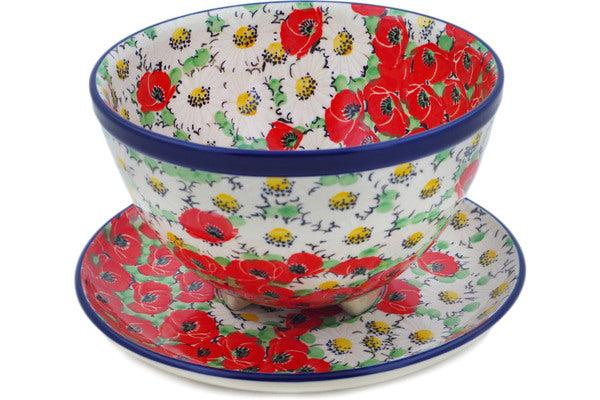 Colander with Plate 8" Spring Blossom Harmony Theme UNIKAT