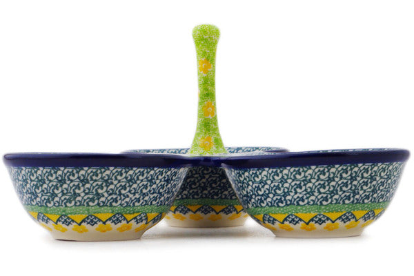 This Spring On The Branch 10" Condiment Dish was handmade and hand decorated in Boleslawiec, Poland by skilled artisans according to old traditional methods. This is a Polish pottery Signature Unikat, which means that it has been hand painted with both sponges and brushes and it is signed by the artist who painted it. Unikat pieces are the most intricate works of art. Larger Unikat items take hours of very careful work to finish. This Polish stoneware is microwave, dishwasher, freezer, and oven safe up to 480°F. It does not contain lead or cadmium. It is part of the Spring On The Branch Collection.