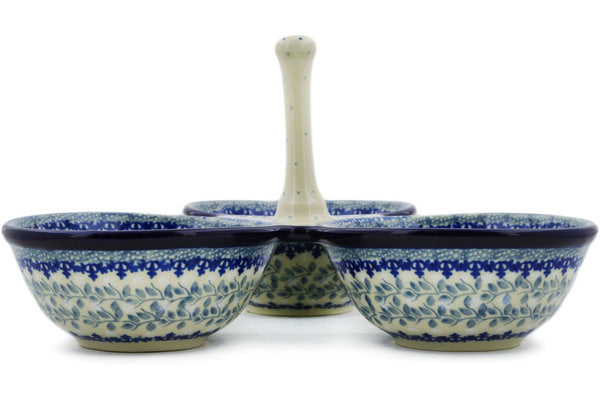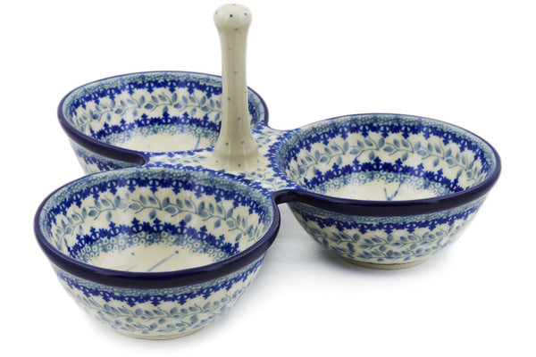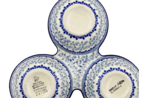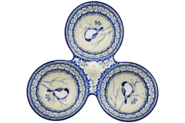 This Waiting Birds 10" Condiment Dish was handmade and hand decorated in Boleslawiec, Poland by skilled artisans according to old traditional methods. This is a Polish pottery Signature Unikat, which means that it has been hand painted with both sponges and brushes and it is signed by the artist who painted it. Unikat pieces are the most intricate works of art. Larger Unikat items take hours of very careful work to finish. This Polish stoneware is microwave, dishwasher, freezer, and oven safe up to 480°F. It does not contain lead or cadmium. It is part of the Waiting Birds Collection.