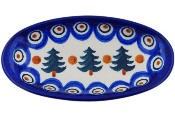 This Autumn Evergreen 6" Condiment Dish was handmade and hand decorated in Boleslawiec, Poland by skilled artisans according to old traditional methods. This Polish stoneware is microwave, dishwasher, freezer, and oven safe up to 480°F. It does not contain lead or cadmium. It is part of the Autumn Evergreen Collection.