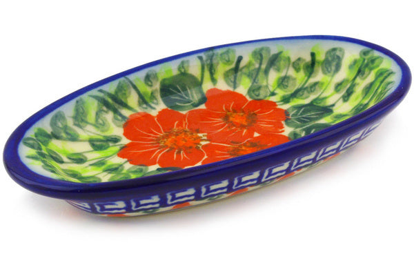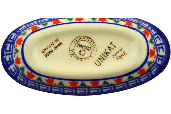 This Happiness 6" Condiment Dish was handmade and hand decorated in Boleslawiec, Poland by skilled artisans according to old traditional methods. This is a Polish pottery Signature Unikat, which means that it has been hand painted with both sponges and brushes and it is signed by the artist who painted it. Unikat pieces are the most intricate works of art. Larger Unikat items take hours of very careful work to finish. This Polish stoneware is microwave, dishwasher, freezer, and oven safe up to 480°F. It does not contain lead or cadmium. It is part of the Happiness Collection.